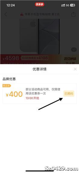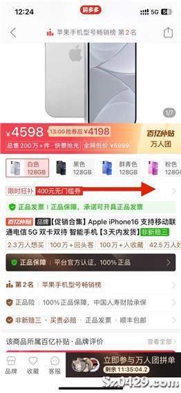 拼多多百亿补贴苹果手机优惠券。400元的优惠券300回收