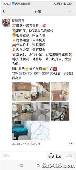 - 出租水韵奥园电梯复式两室,家具家电齐全,拎包入住,可年租半年